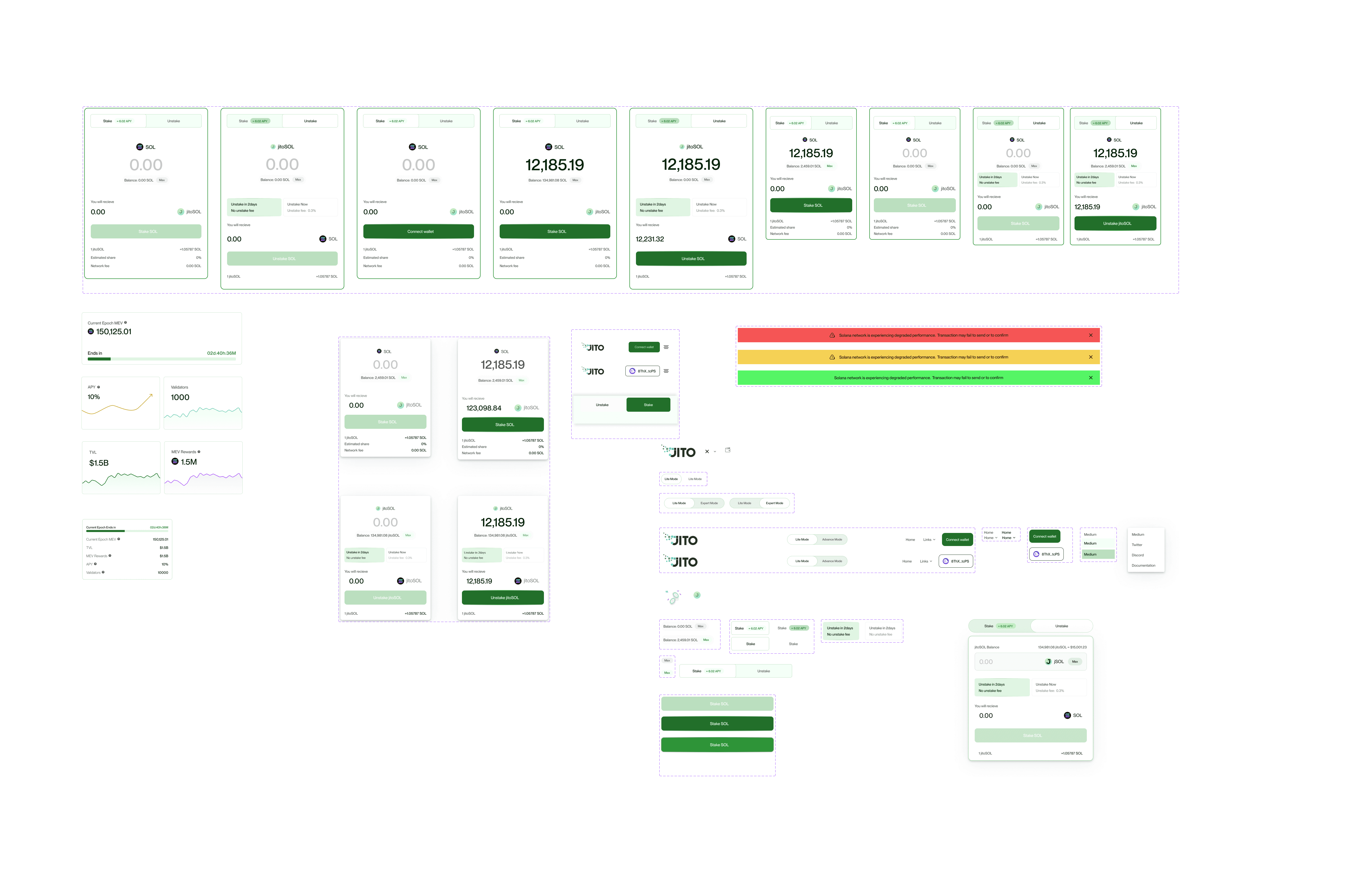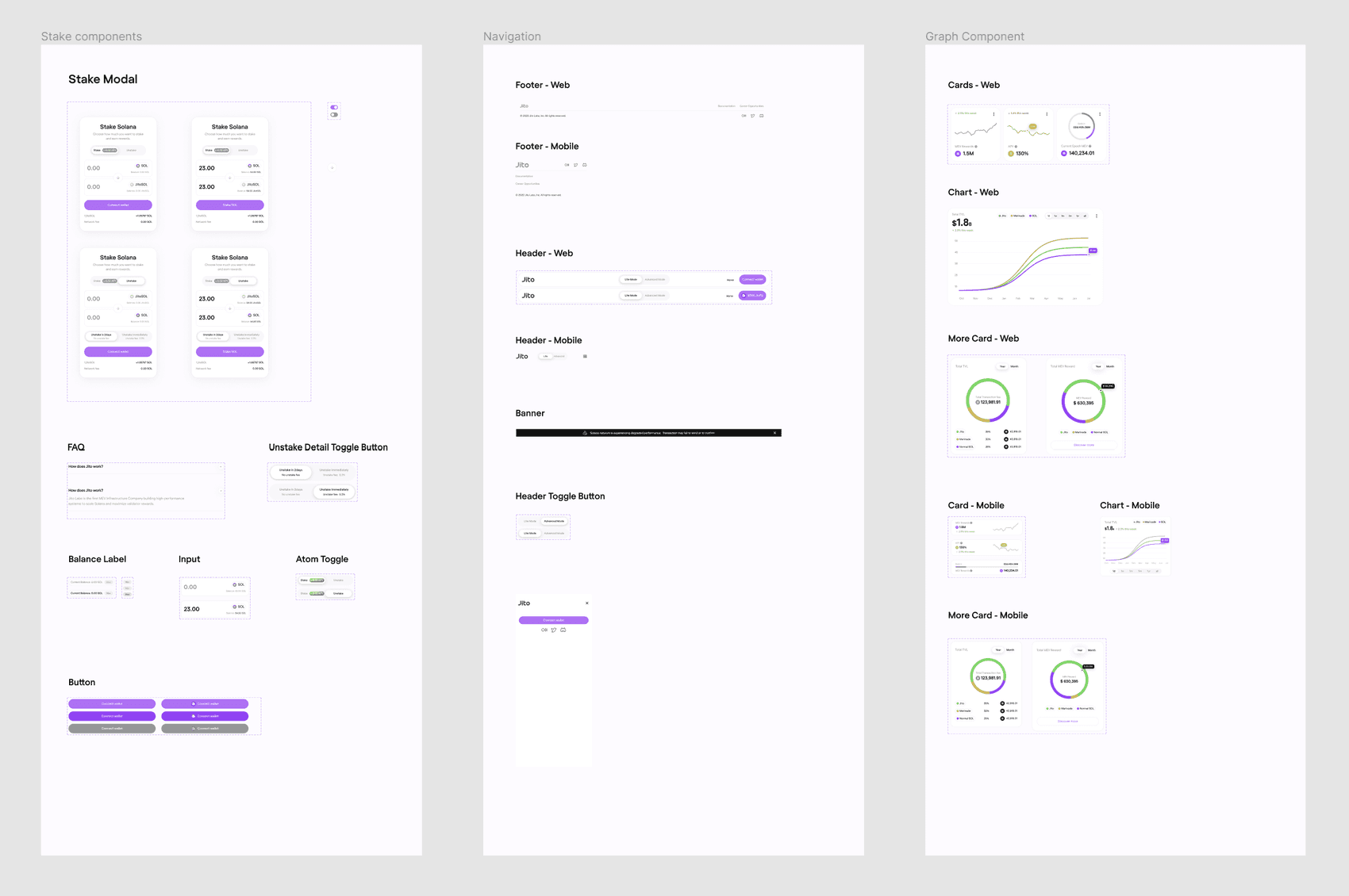 The goal for V1 was to create a perfect UX, with visual design as a secondary concern. Therefore, we broke the design sections into 3 parts: - Basic simplified staking - Explore an advanced staking interface - Explore the feature to transfer assets from other platforms to Jito (Vampire Attack) - Optimize for mobile responsiveness