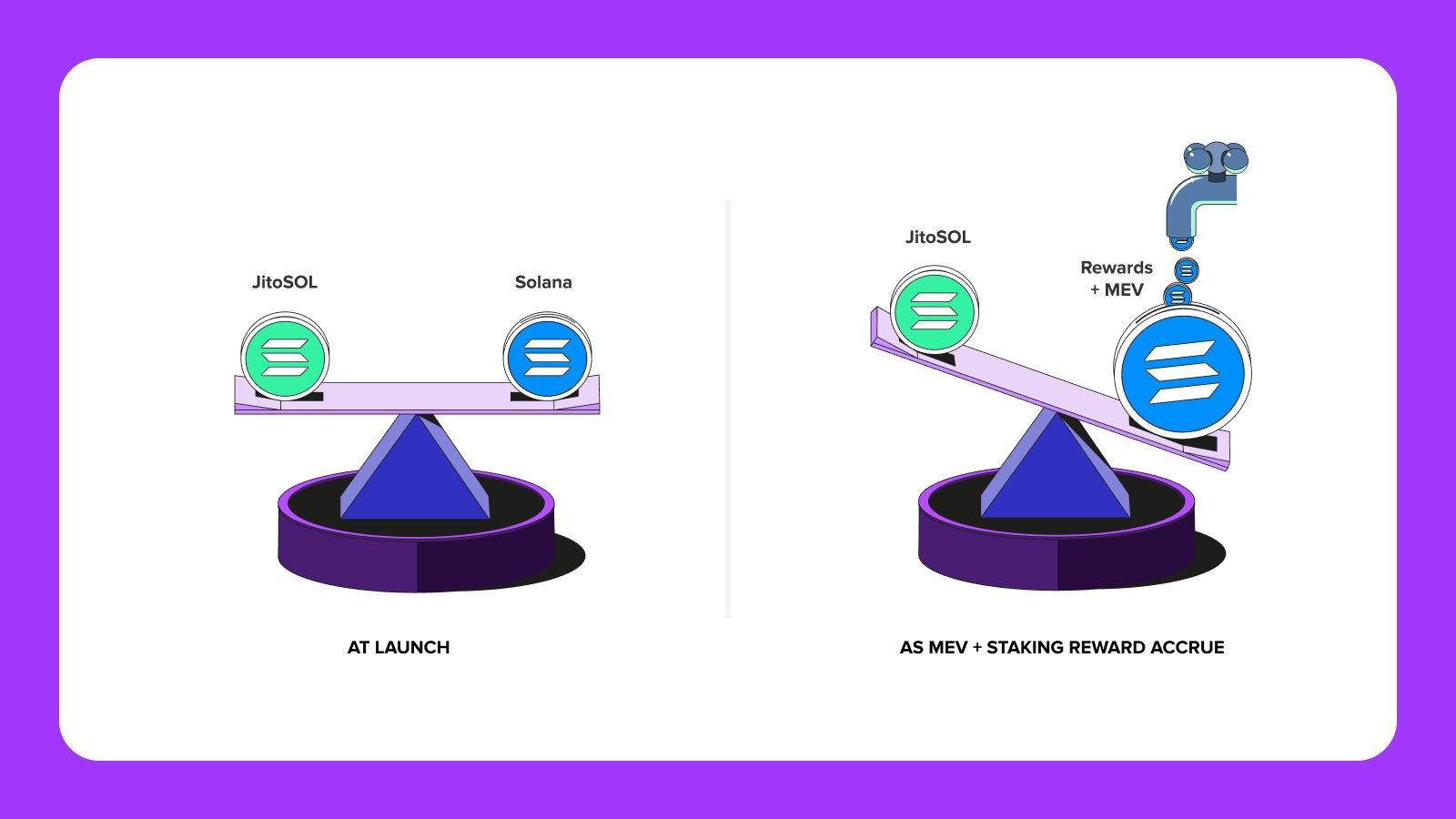 Jito Foundation (Network) is an MEV infrastructure company that develops systems to scale Solana and maximize validator rewards. Users can deposit SOL to earn JitoSOL. The Jito Stake Pool delegates SOL to MEV-enabled validators who auction blockspace and earn MEV rewards. These rewards boost the stake pool's APY, and users holding JitoSOL also benefit from MEV rewards, enhancing their overall returns alongside staking rewards. This setup allows users to maximize their earnings through staking and MEV opportunities on the Solana network.