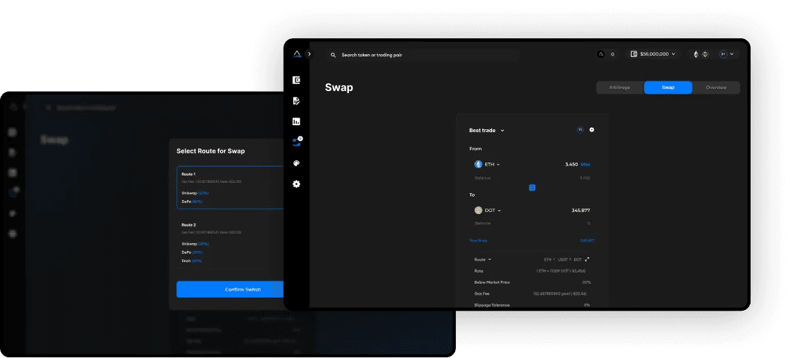 The swap interface was designed to allow the conversion of one token to another on the same blockchain. At the same time, we give users the ability to import tokens from any blockchain by pulling data from sources like DEX tools, Coingecko, Coinmarketcap, etc. you can swap any token in the world for any token on Arc. We give you the best routes, aggregate all protocols with such tokens, and select the best for you.