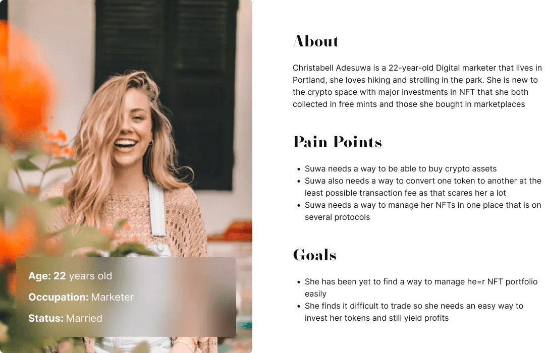 The next step in the research phase was to look at major protocols across several aspects that were doing well in their niche. The available product has covered many niche areas, including Defi to DEX, NFT, and analysis tools. So these were the competitors researched below DEX: 1inch, Zapper, Uniswap, Sushiswap NFT: Opensea, Rarible, Foundation.app Analysis: Dextools, Coinmarketcap These helped in getting an overview tho analogous; it helped to structure the UX of the product as the base shell so we can improve the design, UX, and overall value proposition of the protocol.