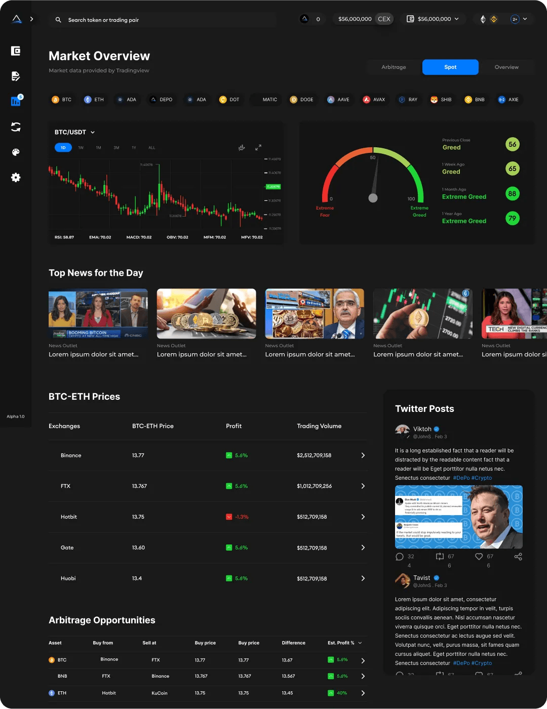 Arbitrage trading is a profitable opportunity for many traders. It involves buying assets from the cheapest protocol and selling them at the highest price. Although it sounds simple, it's actually quite challenging to find such opportunities. Our platform is designed to assist you in your Arbitrage trading endeavors by providing you with all the necessary tools. You'll have access to important news, Twitter updates (since that's where most protocols announce), and a list of Arbitrage opportunities that are refreshed every 10 minutes based on the prices of assets we aggregate from various protocols. Our platform will help you identify the protocols that offer potential arbitrage opportunities.
