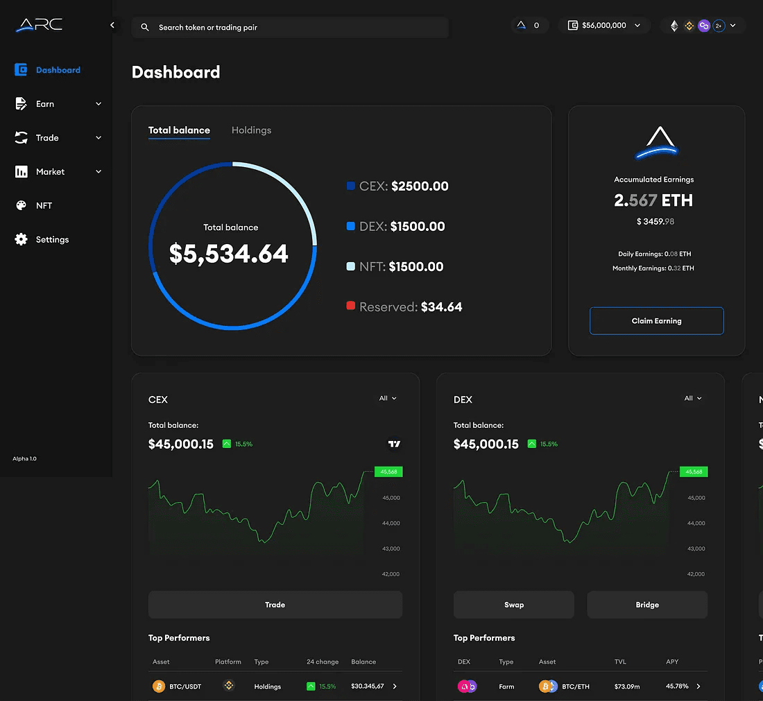 ARC is a web three solution that makes you manage your entire crypto market from the palm of your hand by connecting the world of DEX, CEX and NFT on multiple blockchains effortlessly